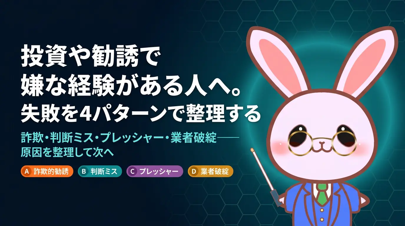 詐欺的な手口、リスク理解の不足、不当なプレッシャー——どのパターンの経験であっても、その経験から学べることは必ずあります。大切なのは、自責ではなく「分析」です。